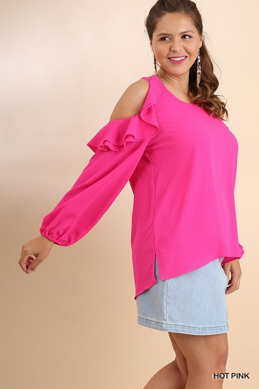 Hot Pink Ruffle Cold Shoulder Sleeve Top